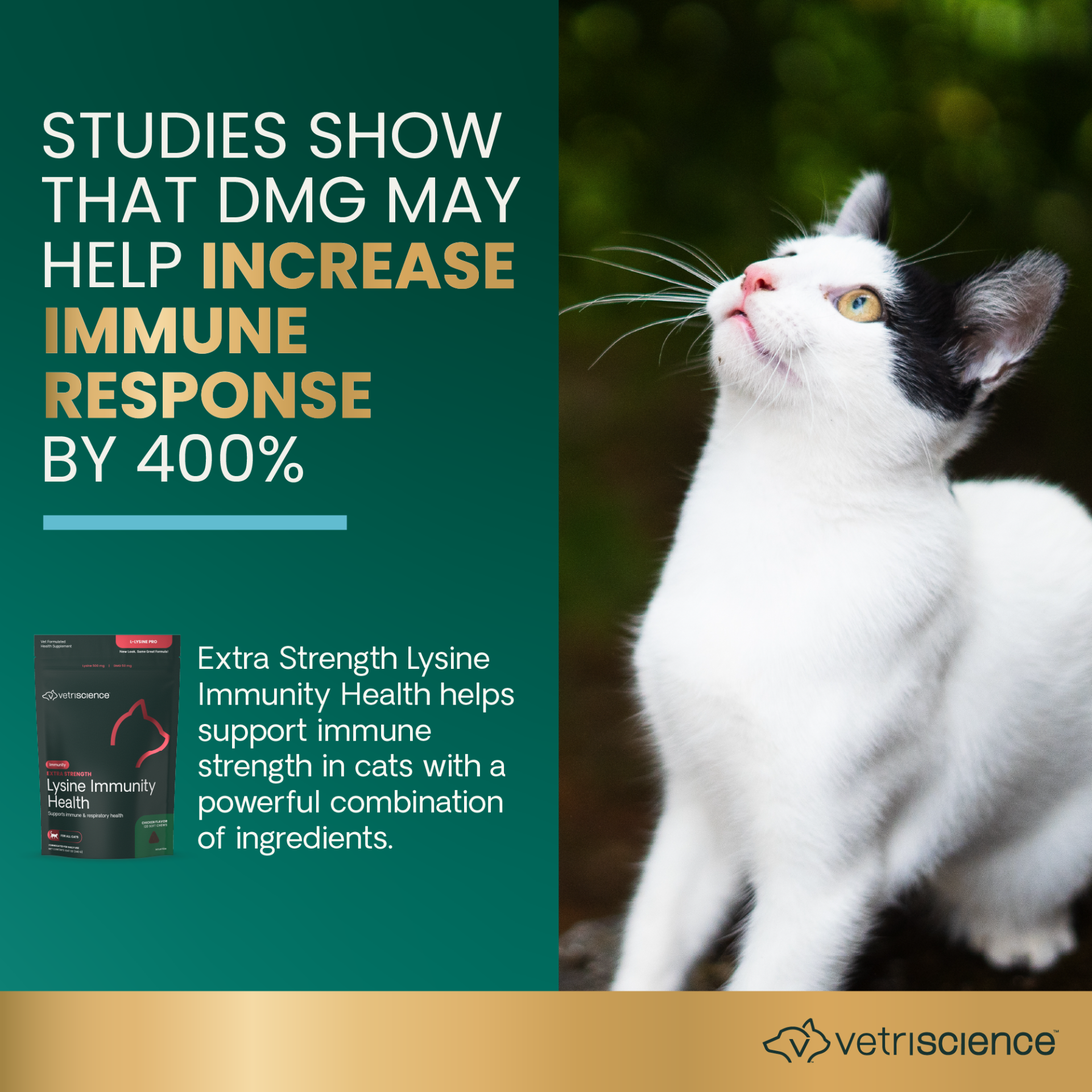 Το LYSINE IMMUNITY – Extra Strength είναι ένα εξειδικευμένο συμπλήρωμα διατροφής σε μορφή μαλακών μασώμενων λιχουδιών, σχεδιασμένο για την υποστήριξη του ανοσοποιητικού συστήματος, της αναπνευστικής υγείας και της υγείας των ματιών στις γάτες. Αποτελεί ιδανική επιλογή για γάτες που είναι επιρρεπείς σε αναπνευστικά προβλήματα, καθώς και για γάτες που έχουν εκτεθεί ή παρουσιάζουν συμπτώματα που σχετίζονται με τον ερπητοϊό της γάτας (FHV-1).